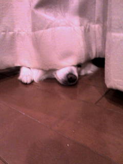 カーテンの中に潜り込み鼻先と手をチョコッと出してスヤスヤ・・・。
