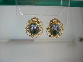 小さな石のパーツを埋め込んで、お花の模様にしています!愛らしいイヤリングですね・・・。