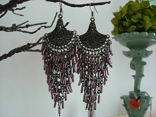 大ぶりのピアスです、9.5cmくらいあります。細工がとっても細かいので、ビーズを使ってますが、