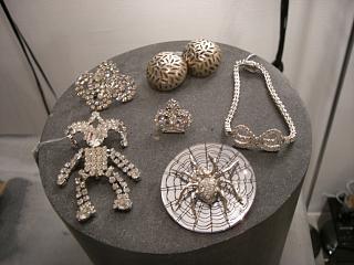 KUMOブローチ ¥7,140- 鏡面に巣を描き、その上にラインストーンのクモがのっています。 西ドイツ製で珍しいです!