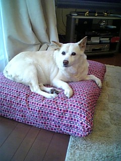 グーのお気に入りです!ペットのお洒落なクッションではないけれどそれでも気を良くしている